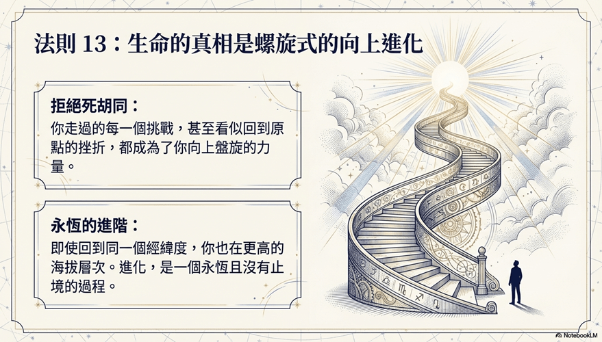 這便是 成長與進化法則 :生命絕非平面的重複,而是向上的螺旋。